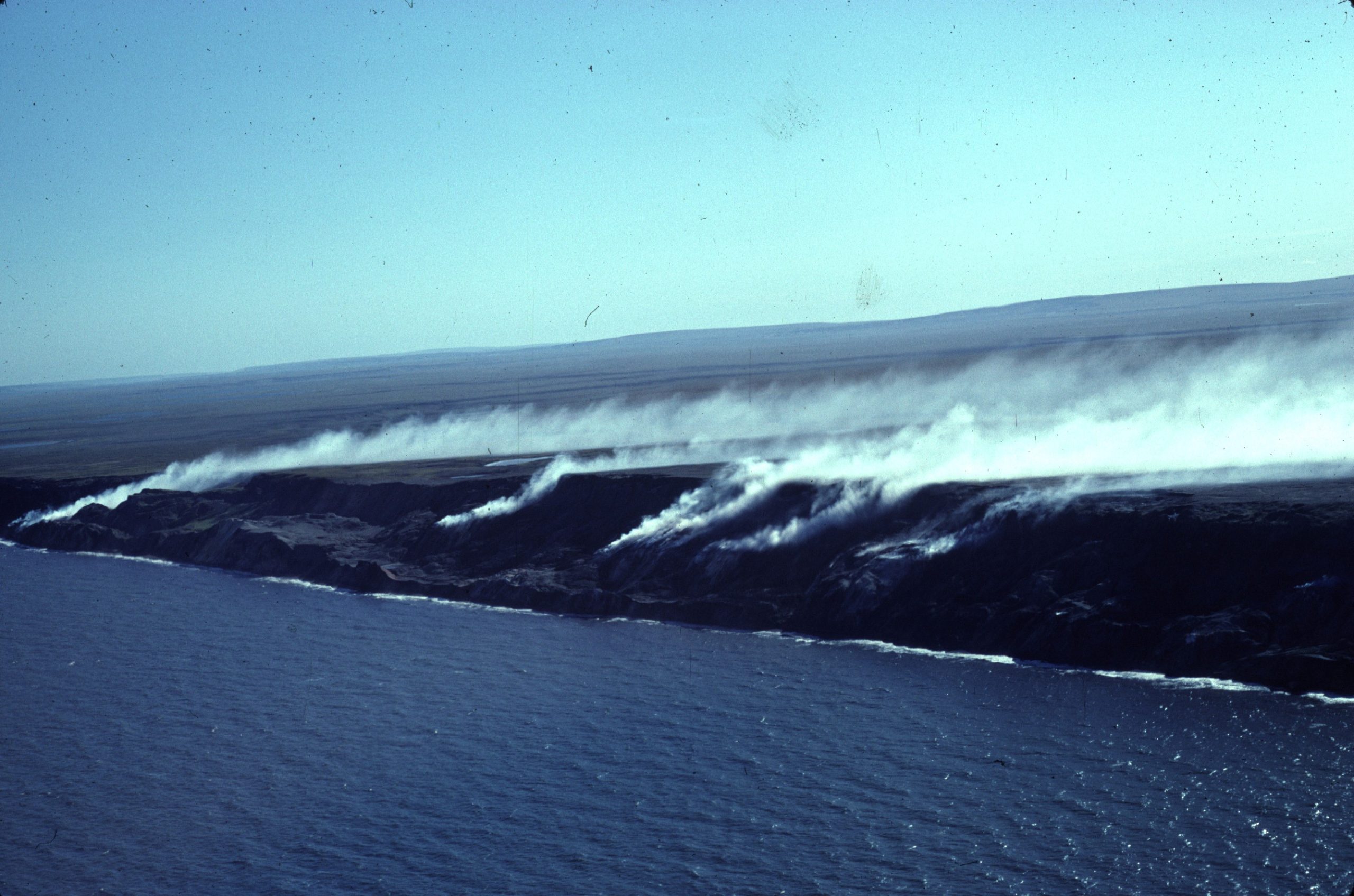 Image 16.1. Natural air pollution at the Smoking Hills is caused when seams of bituminous shale spontaneously ignite and release sulphurous plumes that blow inland and fumigate the nearby tundra. Source: B. Freedman.