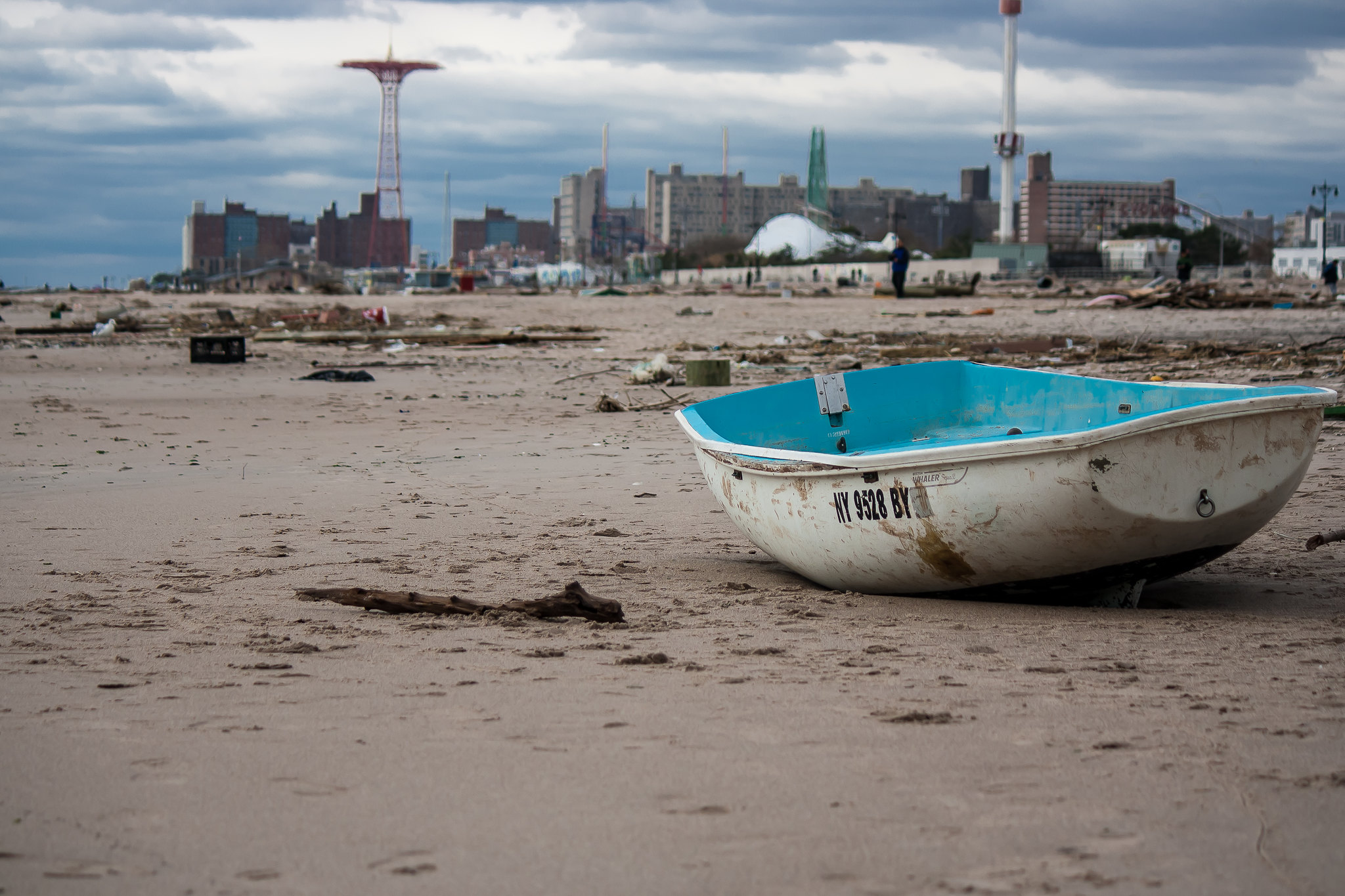 Dirty Boat: view of Coney Island from the beach after Hurricane Sandy by drpavloff on Flickr is licensed under a CC BY-NC 2.0 licence.