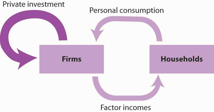 In the circular flow model in Figure 4.2, “Private Investment in the Circular Flow,” we see a flow of investment going from firm to firm. The production of goods and services for consumption generates factor incomes for households; the production of capital goods for investment generates income for households.