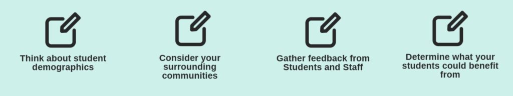 While some of you may come into this role with lots of ideas, some of you may not. That’s totally OK. So where do you start if you have no idea what kind of program or service to offer your students? Consider the following and brainstorm what might work for your campus.