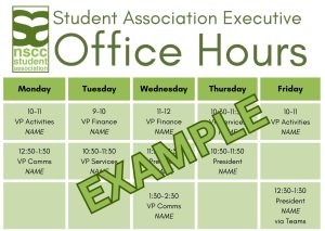 As a requirement of every Executive position checklist, everyone is required to post 2 hours/week and the President is also required to host 1 hour/week elsewhere on campus.