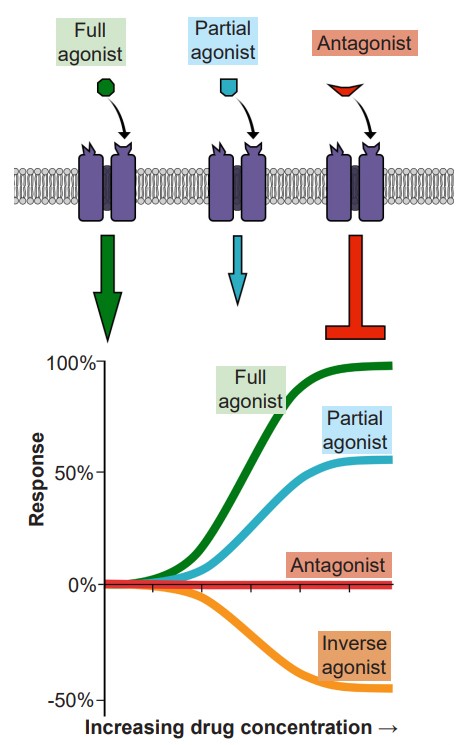 Figure 7.10 Different classes of ligands and their action on the receptors.