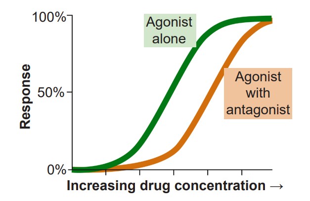 Figure 7.11 Dose response curves for agonist and for agonist plus competitive antagonist.