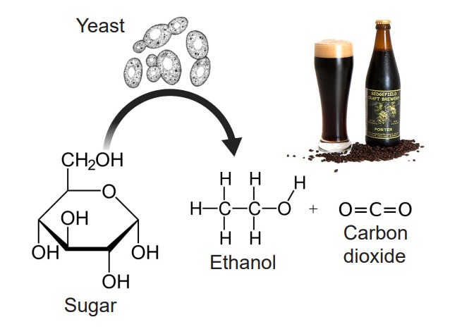 Figure 7.15 Ethanol is a byproduct of yeast metabolism. As carbon dioxide is dissolved into the solution, fermented products like beer become fizzy.