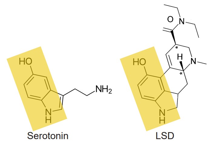 Figure 7.21 LSD is chemically very similar to the endogenous neurotransmitter serotonin.