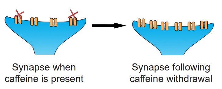 Figure 7.25 The regular presence of an antagonist like caffeine may cause increases of adenosine receptor levels postsynaptically.