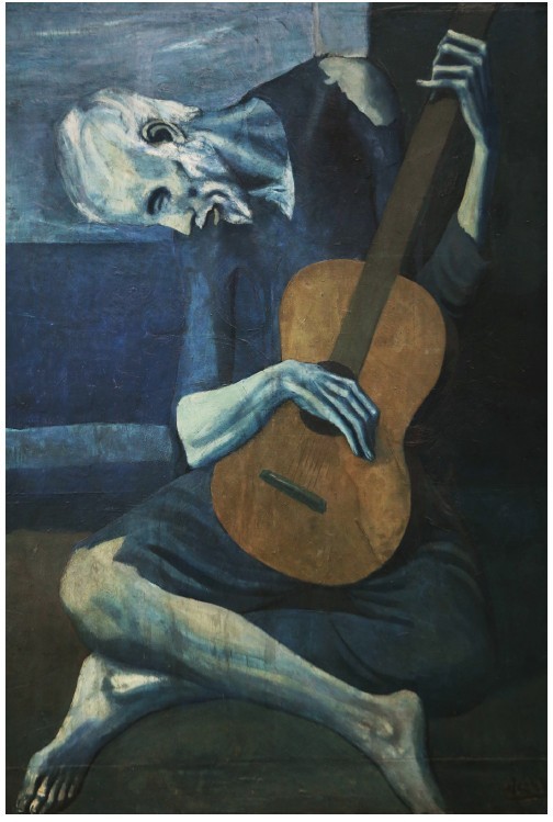 Figure 8.10 Spanish artist Pablo Picasso likely experienced some form of depression, and the paintings made during his “Blue Period,” like The Old Guitarist (1903), reflect his emotional state.