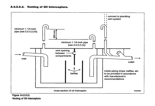 1. Where the discharge from a fixture may contain oil or gasoline, an oil interceptor shall be installed. (See Article 2.2.5.2. for venting requirements for oil interceptor.)