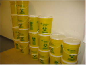 Biohazard Buckets waiting for pick up, Waterfront MLT Laboratory. Credit: NSCC / W. Bryan. - Storage requirements – depending on the type, size and volume of various items for storage, there are a number of different considerations that must be taken into account. Some examples of the types of things that may to be stored either within the space, or externally include: