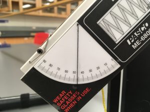 4) Below is an image of the plumb-bob and scale use to determine the launch angle. Based on the image, estimate the uncertainty in the angle measurements. Explain your reasoning.